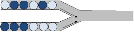 例如,我们首先从下管道中移一个球到输出管道中,将得到图2所示的情况。
