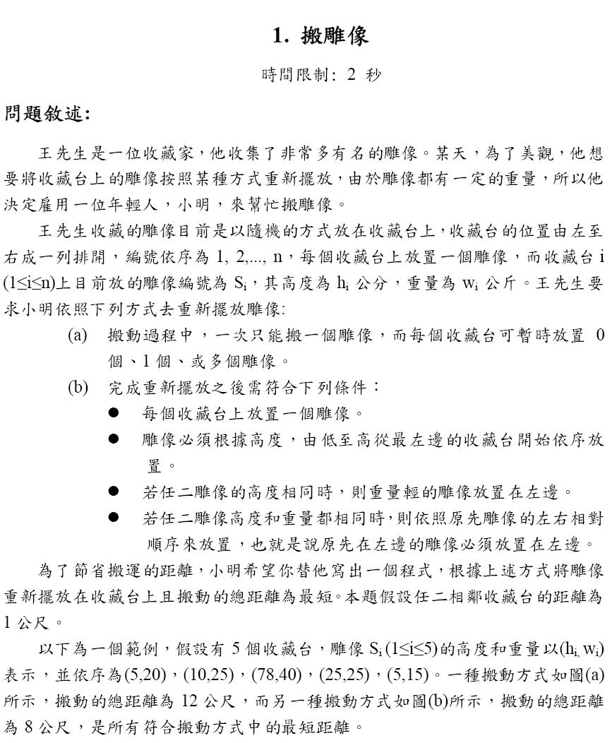 (a) 搬動過程中,一次只能搬一個雕像,而每個收藏台可暫時放置 0