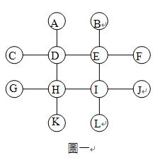 在台灣宜蘭的一個小鄉鎮裡,小學生之間流傳著一個稱為『新井字』的雙人 對弈遊戲。這種遊戲使用的道具是一個『井』字形的棋盤(如圖一所示),和 12 個棋子。遊戲開始時,棋盤上每一個標示英文字母的地方,都可以隨機決定要不 要擺放一個棋子(但是當然不能整個棋盤都不放棋子)。遊戲進行的規則是由兩個 遊戲者輪流取走棋盤上的棋子,每人每次必須取走棋盤上任意 1 個或 2 個相鄰(棋 盤上有直線相連)的棋子,而被迫取走最後一個棋子的人算輸,另一位遊戲者則 得勝。