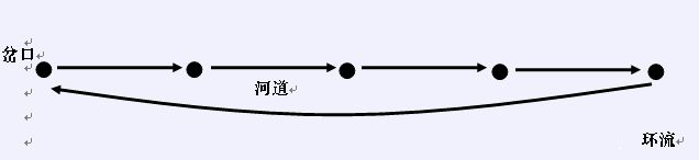 我们可以把Y族居住地水系看成一个由岔口和河道组成的网络。每条河道连接着两个岔口,并且水在河道内按照一个固定的方向流动。显然,水系中不会有环流(下图描述一个环流的例子)。