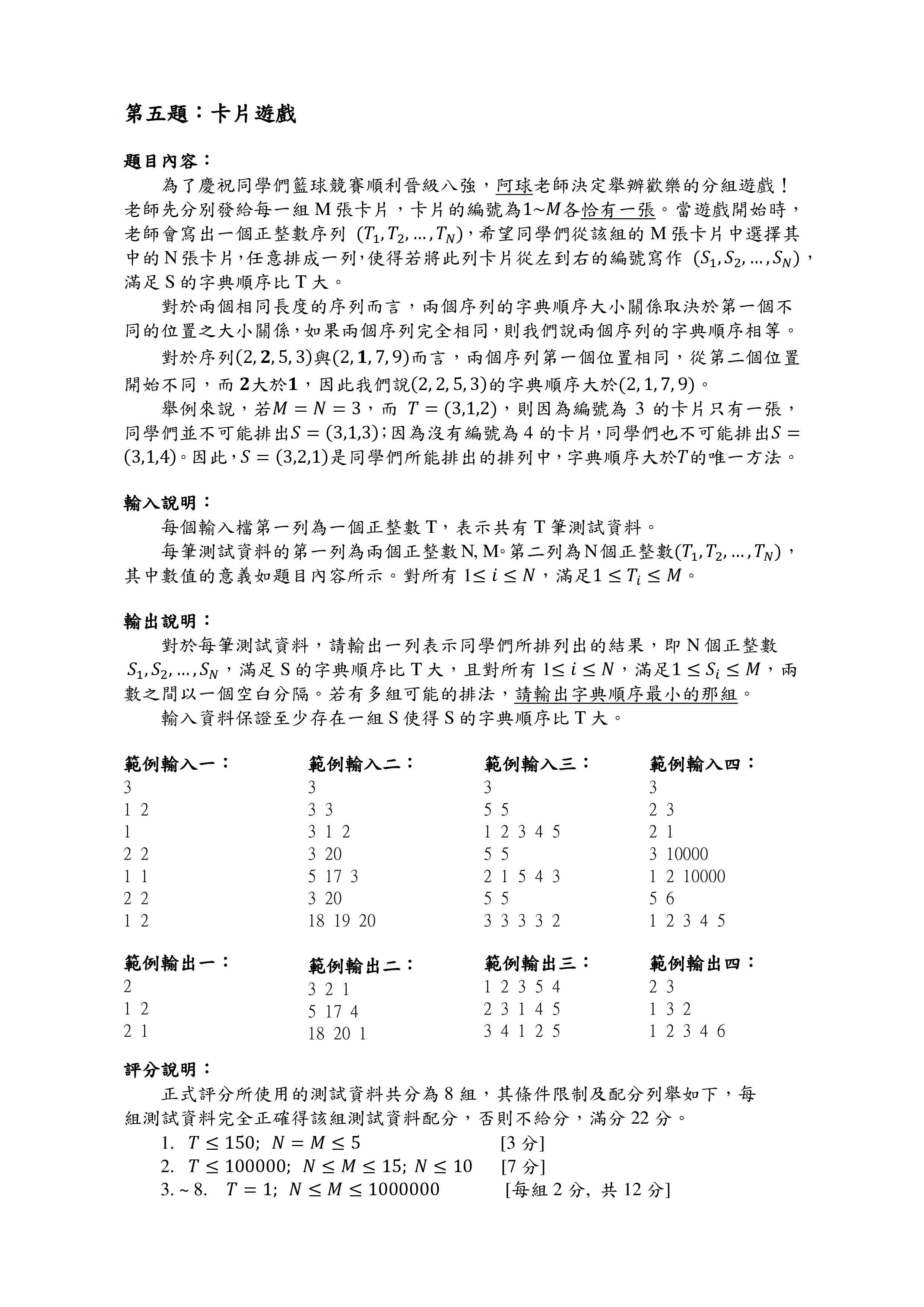 輸入說明:每個輸入檔第一列為正整數 Q,表示共有 Q 筆測試資料。