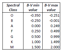 請寫一個程式,藉由B波段和V波段的值將該恆星分類