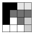 請輸出將所有方塊排列好的4*4方格,並按照輸入順序將A代表第一個方塊,B代表第二個方塊…。在範例測資中A代表T1、B代表T3、C代表J3、D代表I1、E代表I2。