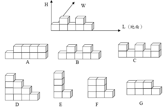 1. 小積木的長(L)寬(W)高(H)之範圍如下: W=1、1<L<30、1<H<30。