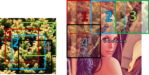 本題採用 Image Quilting 演算法,從紋理擷取小正方形,由左到右、再由上到下拼圖。拼圖恰好蓋滿原圖片就換行。