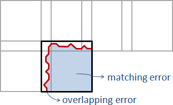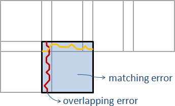 理論上,最佳的拼圖接縫是「接縫處,紋理與新圖片的誤差」與「接縫之右下區域,紋理與原圖片的誤差」兩個誤差的加權平均值最小。但是這樣很難設計演算法。