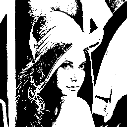 原理很簡單:設定一個數值,當作臨界值。像素亮度大於等於臨界值,重設成白色;小於臨界值,重設成黑色。就這麼簡單。本題的亮度定義為:(R+G+B)/3.0。