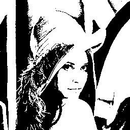 臨界值是整數。窮舉各種臨界值,從中找到最好的臨界值。如果最好的臨界值有許多個,那麼請找到最小的臨界值。最極端的例子是整張圖片只有一個像素,此時該像素直接變成白色。