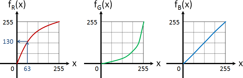 像素數值必須符合RGB值範圍。多項式函數 p(x),最後調整成 f(x) = max(0, min(255, round(p(x))))。