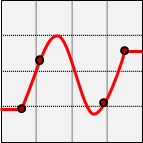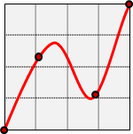 使用者可以增設並挪動控制點,曲線將穿過所有控制點。曲線是N-1次多項式函數,N是控制點數量。