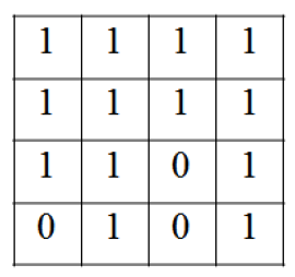 測試資料的第 一行數字為 n,其值為 2至 6的整數 ,表示棋盤大小為 n×n。 從第二行開始為棋盤第一列 由左 到右的數字 ,依此類推, 輸入值皆為 0或 1。
