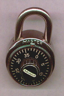 你今天的任務需要來開一個鎖(如右圖)。在鎖上有一個轉盤,上面有40個刻度(0到39來代表)。開鎖的密碼由3個號碼組成,例如:15-25-8。要打開這種鎖要按照以下步驟:
