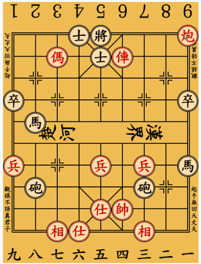 | 帥 | 仕 | 相 | 俥 | 傌 | 炮 | 兵 |