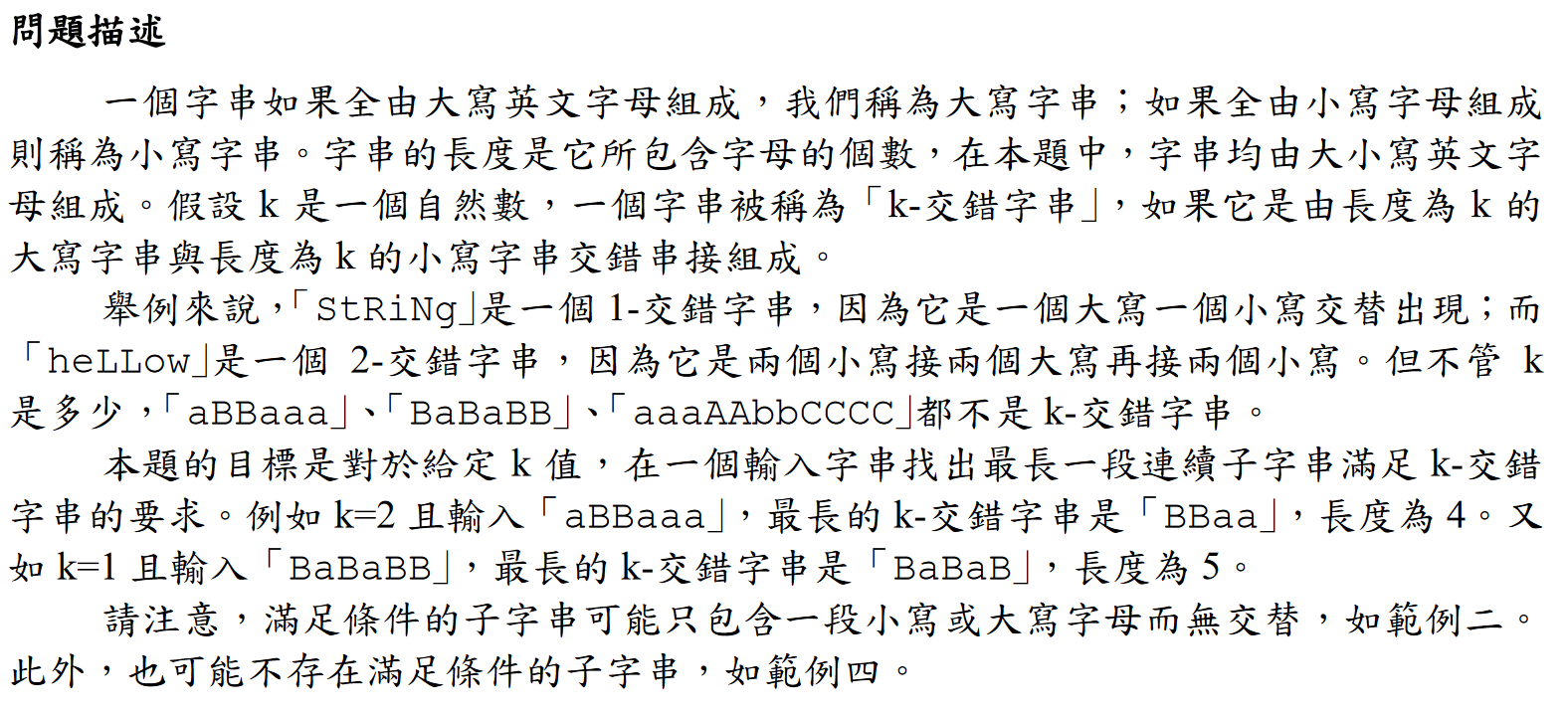 第2子題組30分,字串長度不超過100且k ≤ 2。