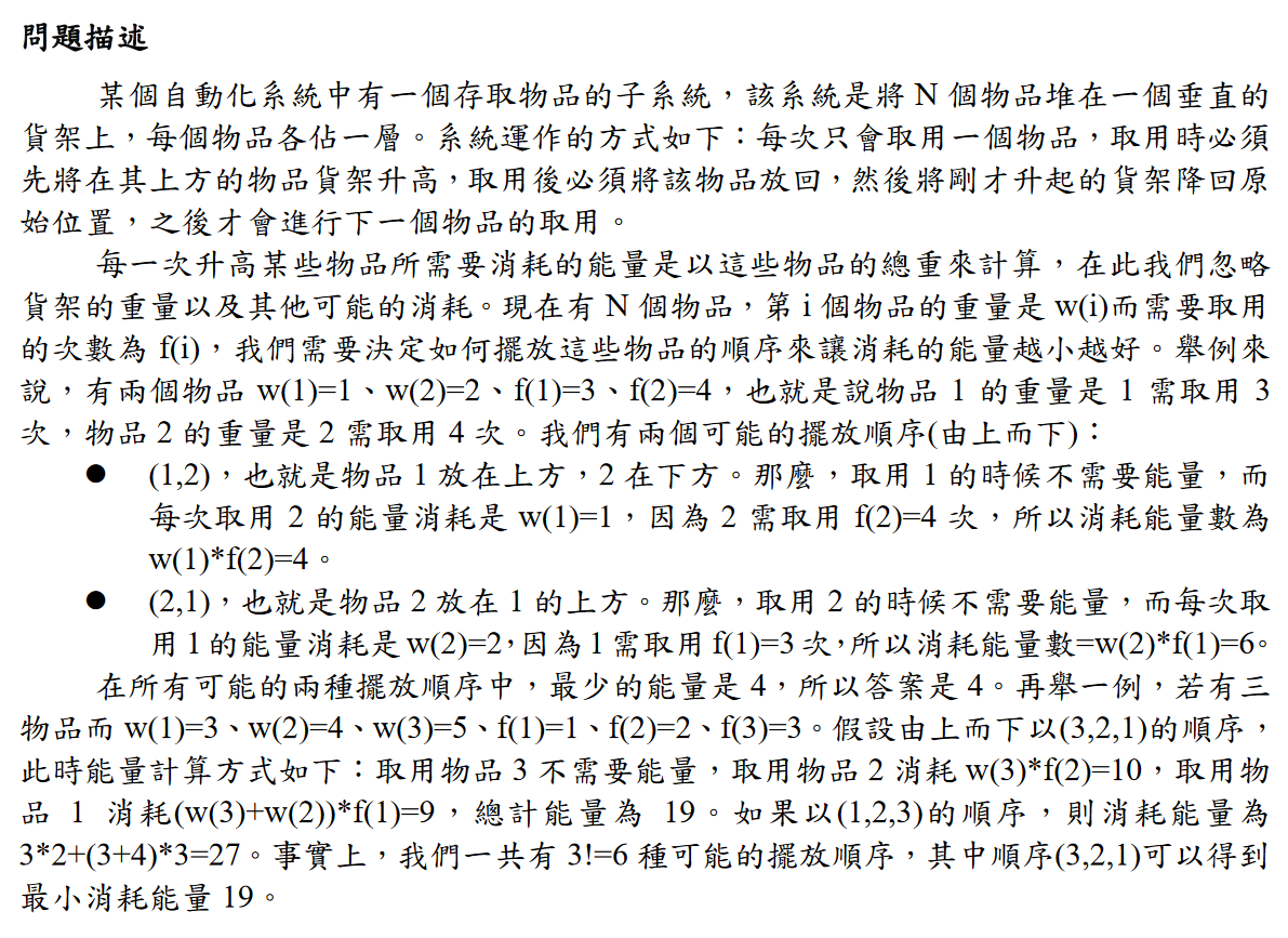 第3子題組45分,N ≤ 1,000,且每一個物品i的取用次數f(i)=1。