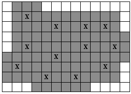 給你一個 n 列 m 行的格子代表尼斯湖,6 ≤ n, m ≤ 10000,找出最少要放幾個聲納才能控制所有的方格,條件如下:
