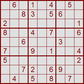 很多報紙上都有提供一種叫做「數獨」的遊戲,給你一個9*9的方陣,有些格子填有1~9的數字,有些格子則是空白。你的任務是完成這個方陣,使得每一列(橫的),每一行(直的),以及每一個小九宮格中的數字都剛好是1~9。