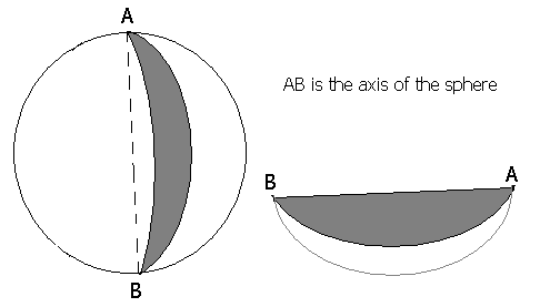 你的任務就是計算賣一東西(固體的球體)的利潤。商人買來一個球體然後把它切割成相等的 n 等分出售。所有的切割一定都通過球體的軸心,如下圖一般: