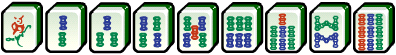 索子 / 條子(Bams):以每張牌有竹棒而命名的(除了一索外),每根竹棒代表一串穿過一百個銅幣的繩子(Suo)。在這個問題中,以1S、2S、3S、4S、5S、6S、7S、8S、9S代表。
