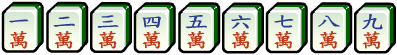 萬子(Craks):以每張牌代表萬個銅幣而命名的(Wan)。在這個問題中,以1W、2W、3W、4W、5W、6W、7W、8W、9W代表。
