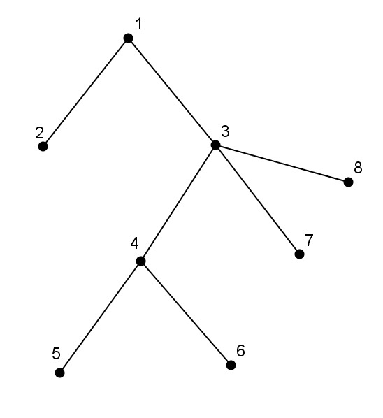 範例輸入 1: //此行不會出現在測資中 8 1 2 1 3 3 4 3 7 3 8 4 6 4 5 範例輸入 2://此行不會出現在測資中 10 1 5 1 10 5 2 3 5 10 7 6 10 4 7 9 7 3 8