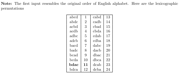 k的值將在(1 ≤ k ≤ n!)範圍內。