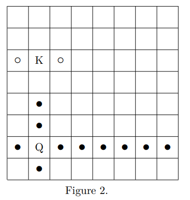 國王的合法移動是第9、16、18、25格(下圖 ◦ 點)。