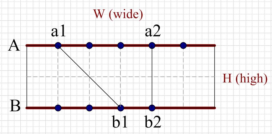其中 n 代表A石牆上的點數,m 代表B石牆上的點數,