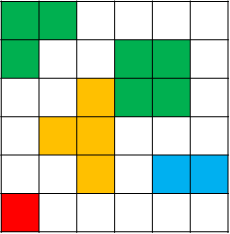 以下圖為例,有 2 個綠色色塊、1 個橘色色塊、1 個紅色色塊、1 個藍色色塊,