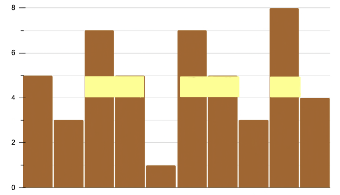 柵欄長相如下圖,三張海報 (寬度為 2, 2, 1) 可以貼在高度為 $5$ 的高度。