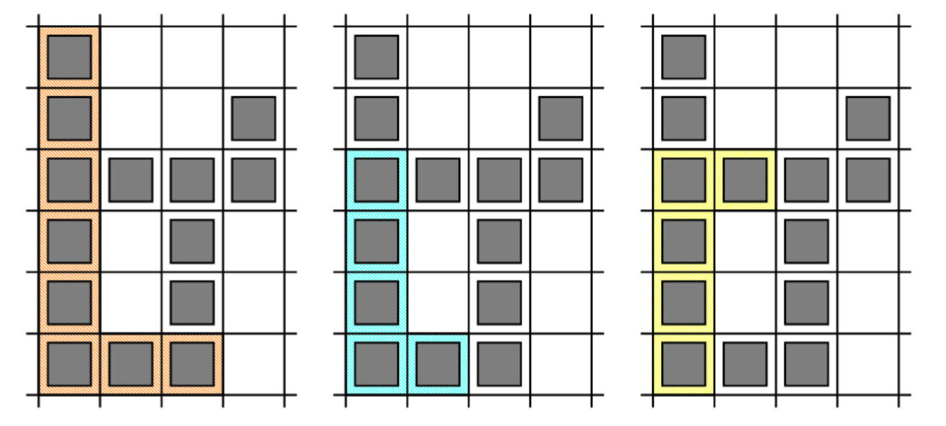 • The second one is formed by using cells: (3,1), (4,1), (5,1), (6,1), (6,2)