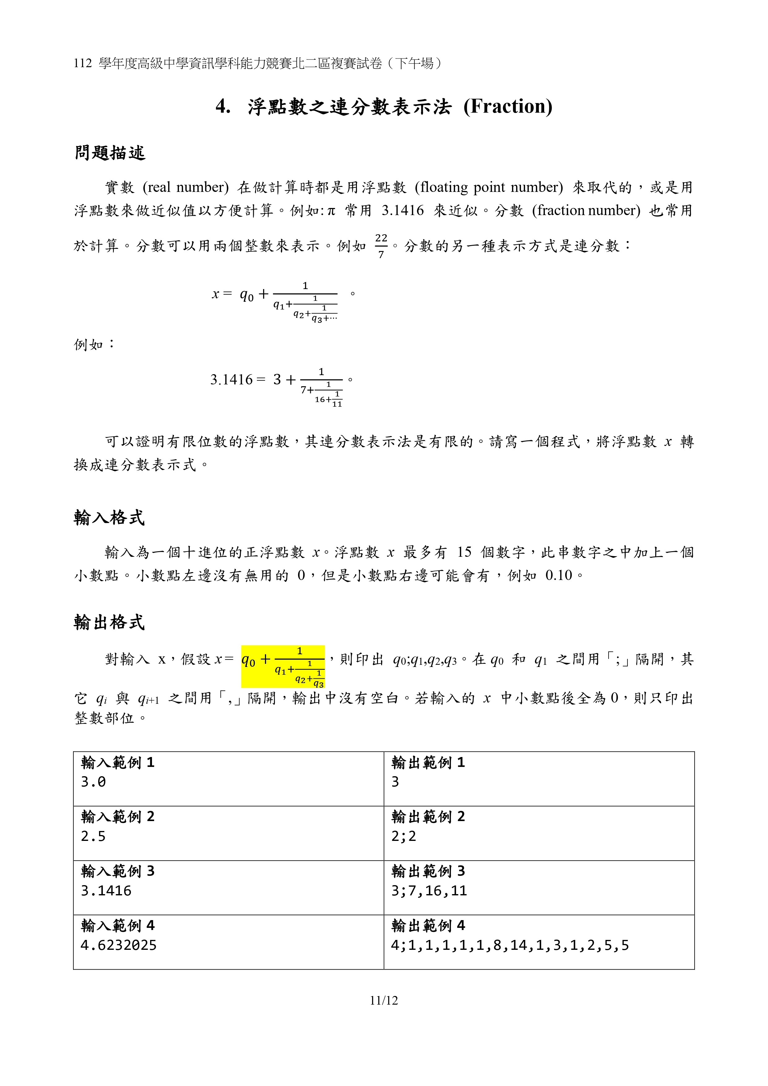 112北二4b.浮點數之連分數表示法 (Fraction)