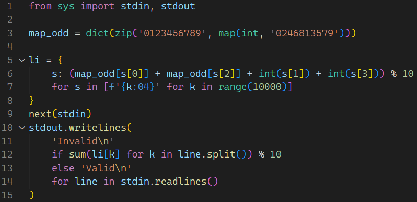 附註:最後一張圖,第14行,直接寫for line in stdin可以到3.2s並且更省記憶體。