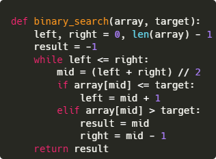 這是一個普通的二元搜寫法不多解釋,它有一個小問題,如果陣列裡有重複的元素,我不能保證拿到的是哪一個。