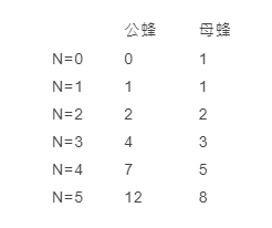 可以發現某年公蜂的數量為去年的公蜂加母蜂而母蜂的數量為去年的公蜂數量+1用遞迴+dp就可以做出來要考慮輸出的答案太大 要用long裝PS. 在使用printf的人 注意前面的引數不要用%d 不然你會跟我一樣卡5次WA