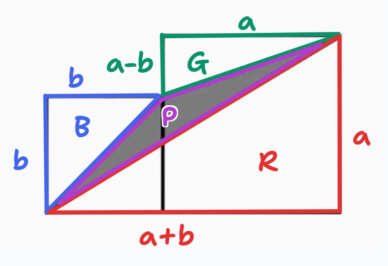 P = a*a + b*b - R - G - B = a*a + b*b - (a*a + a*b) / 2 - (a*a - a*b) / 2 - b*b / 2 = b*b / 2
